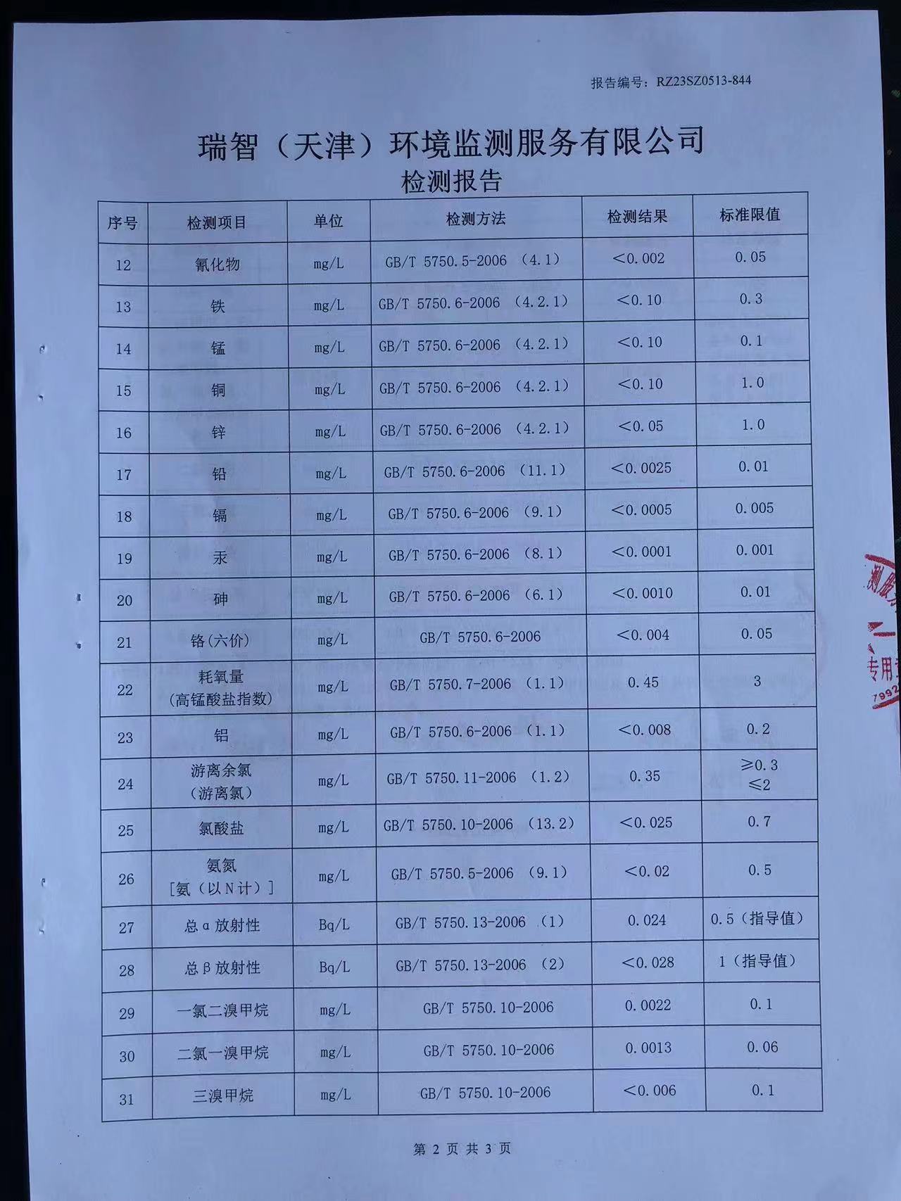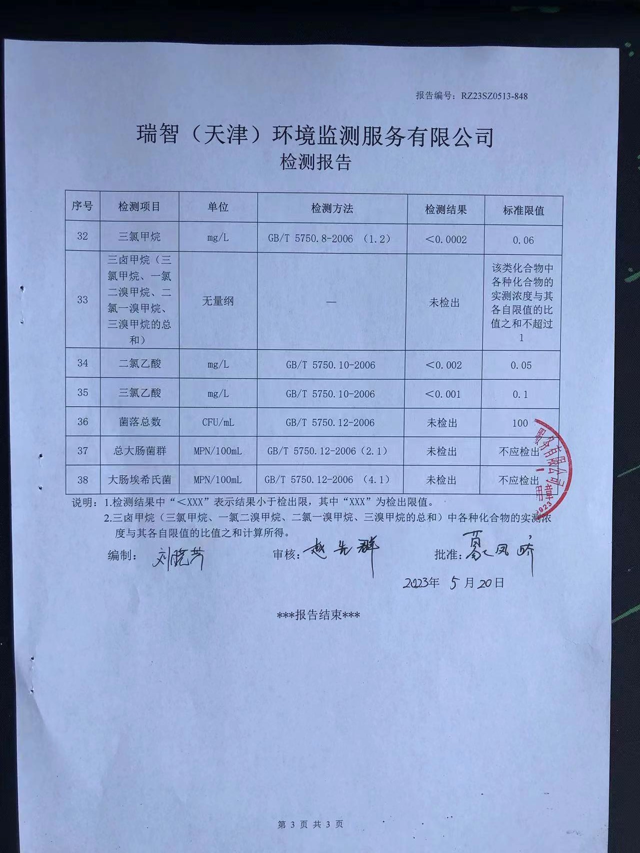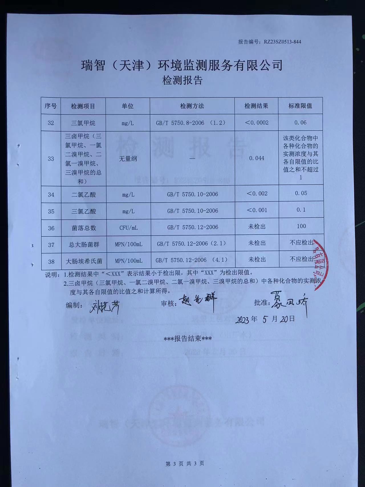2023年5月份水质检测报告