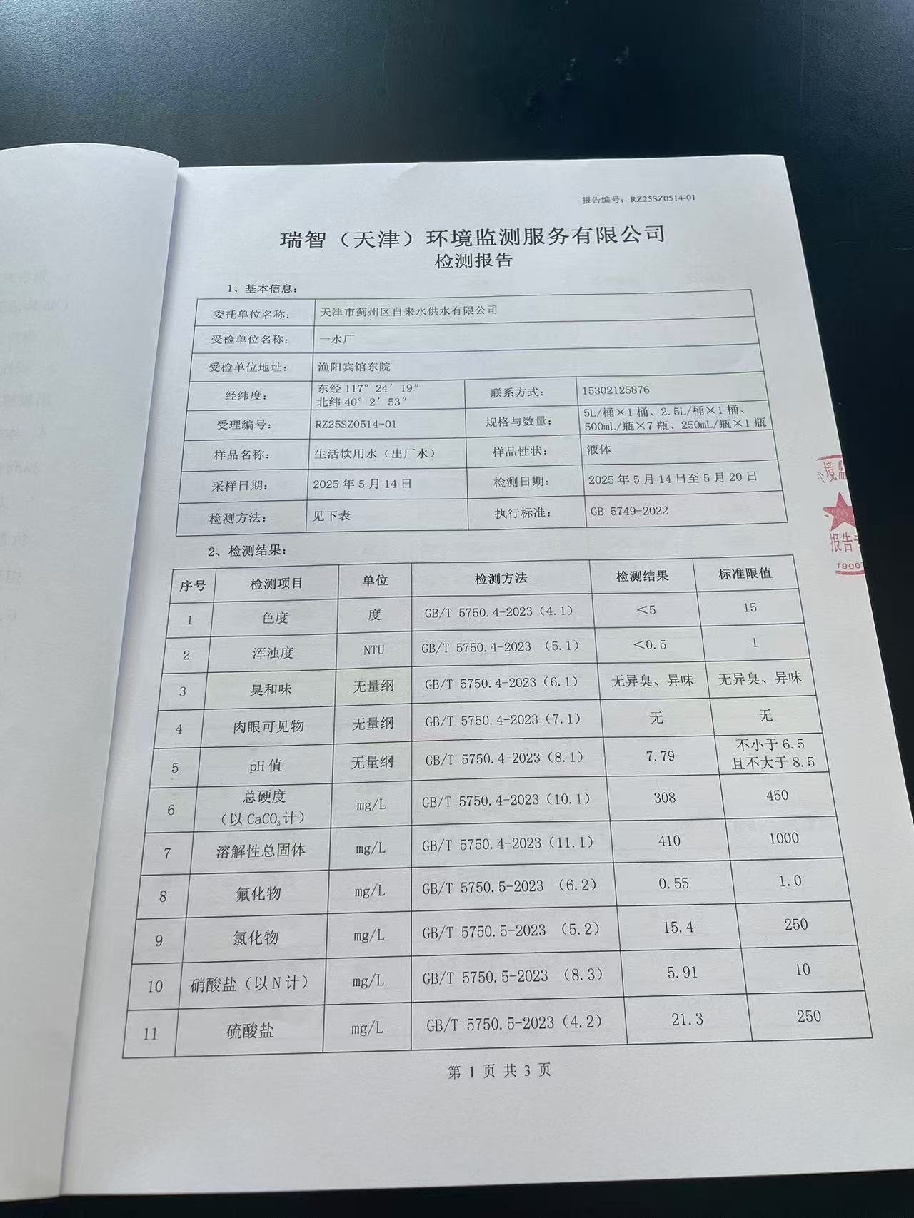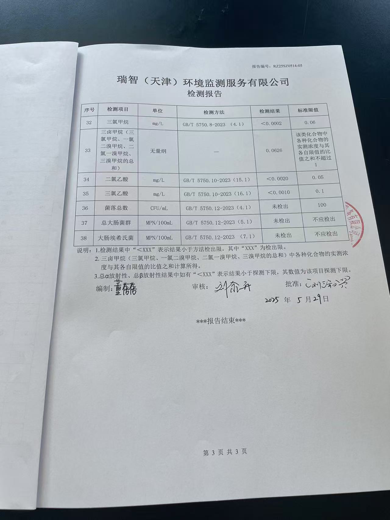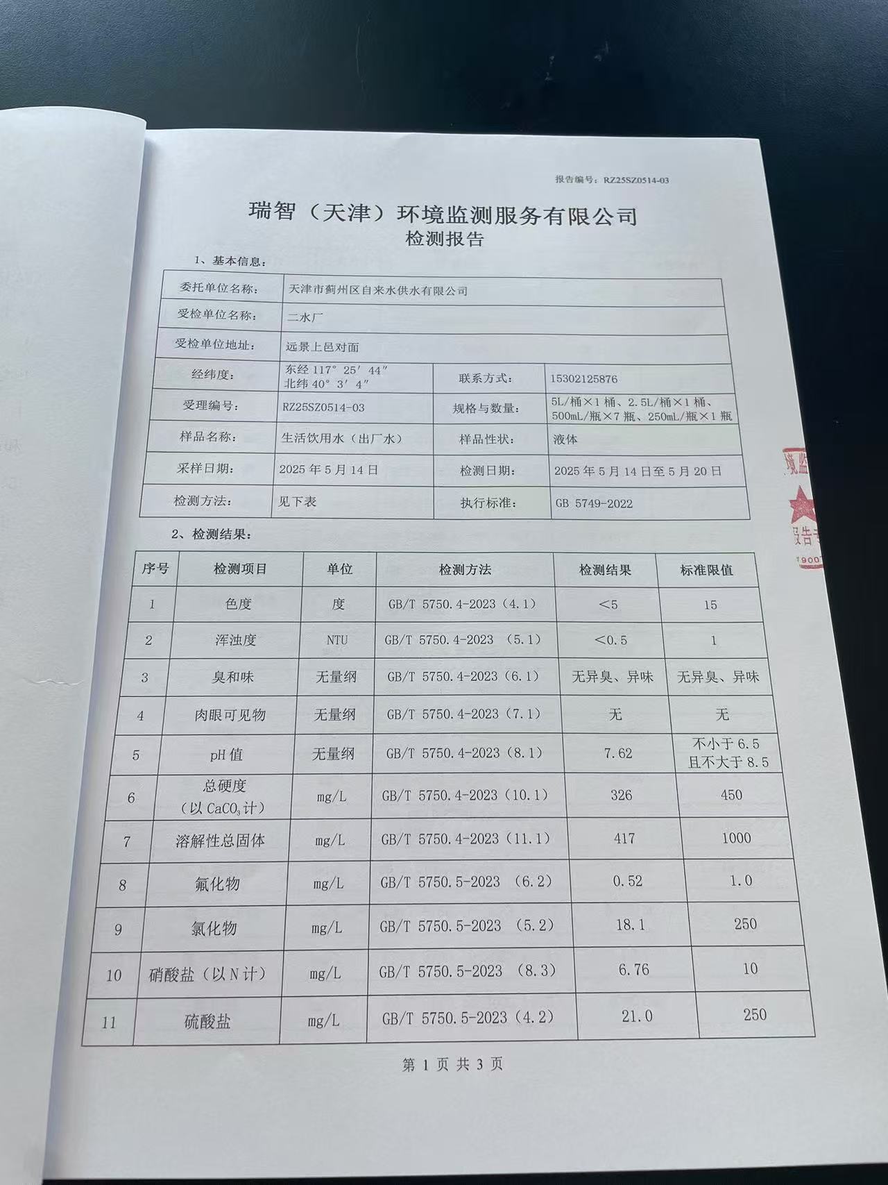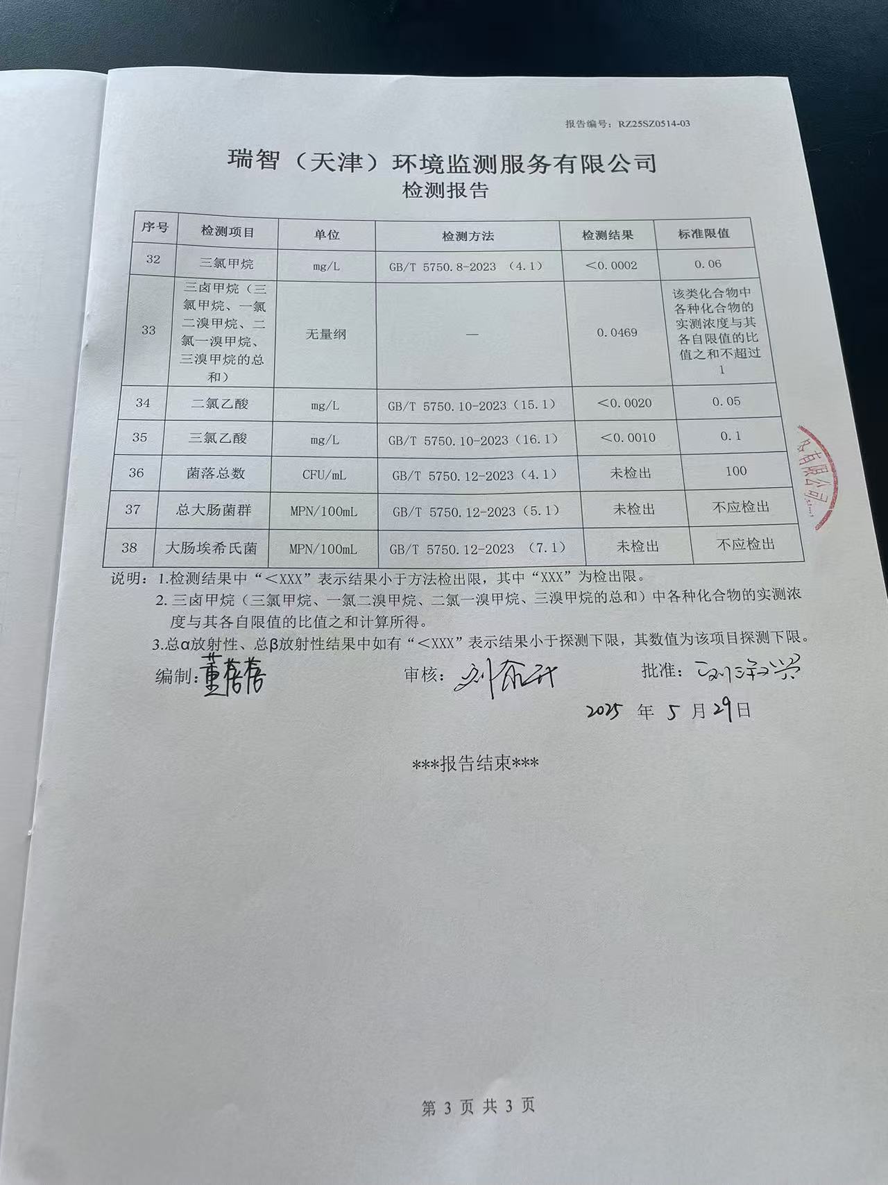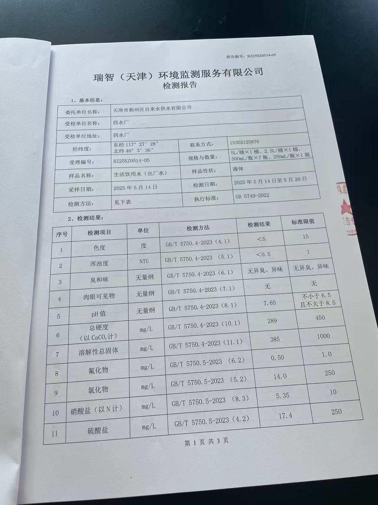2025年5月份水质检测报告