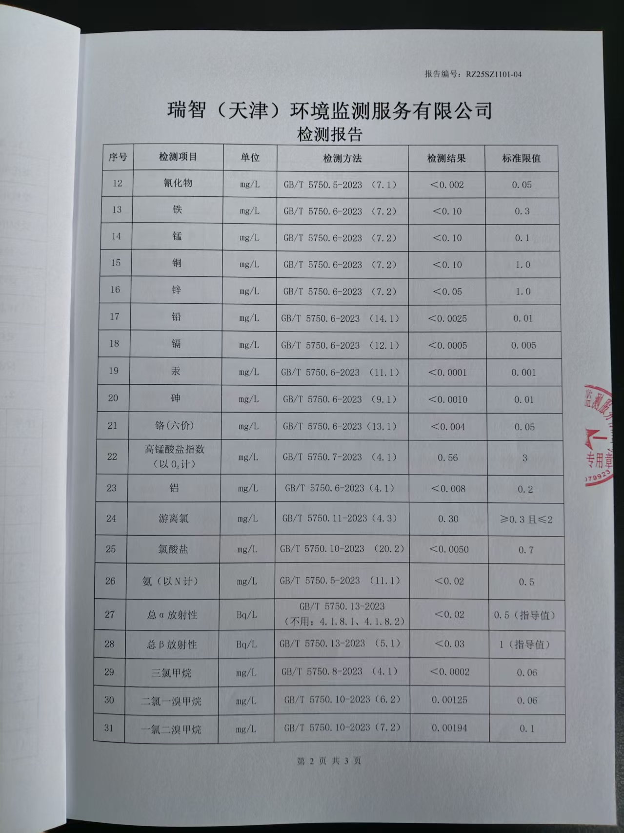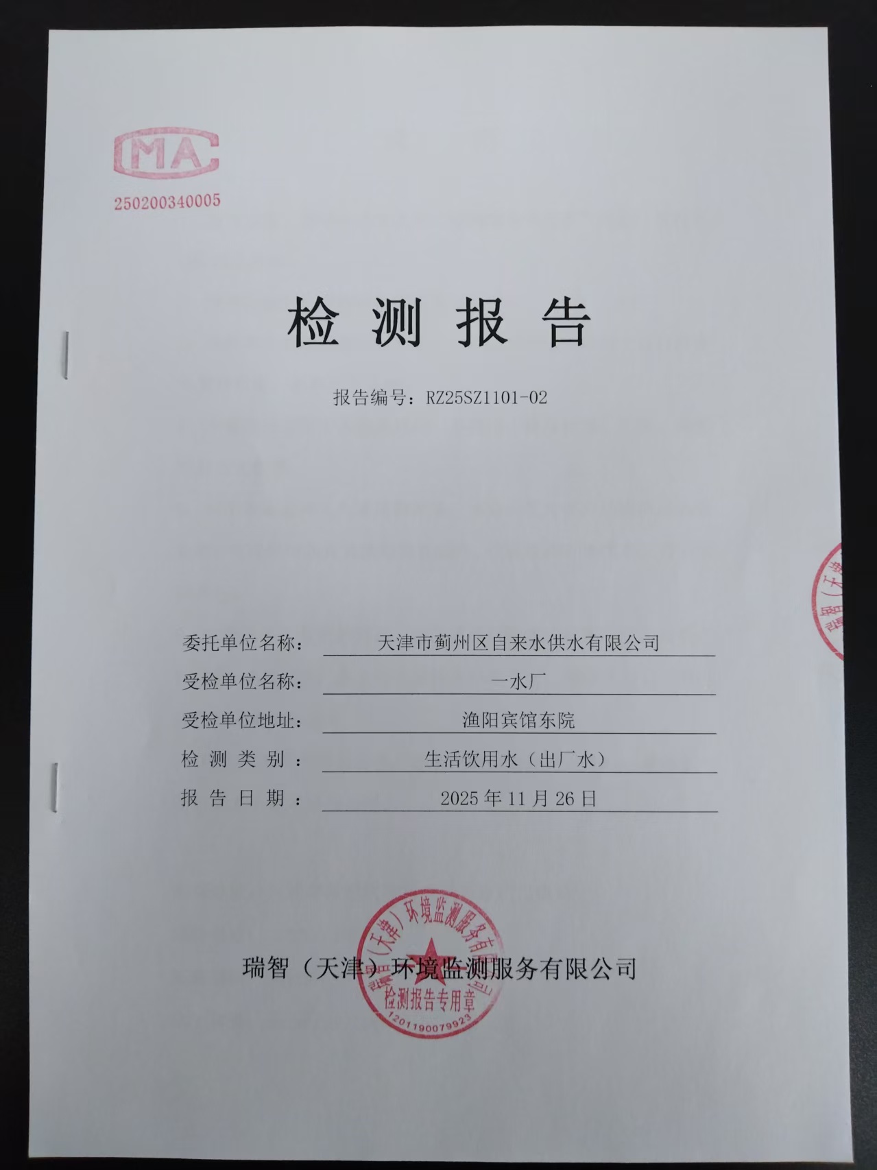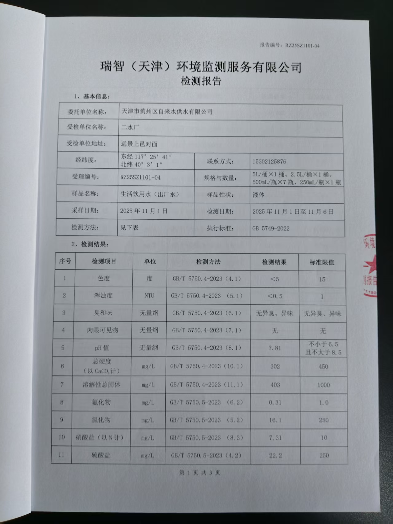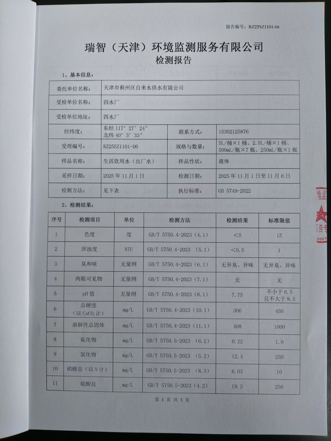 2025年11月份水质检测报告
