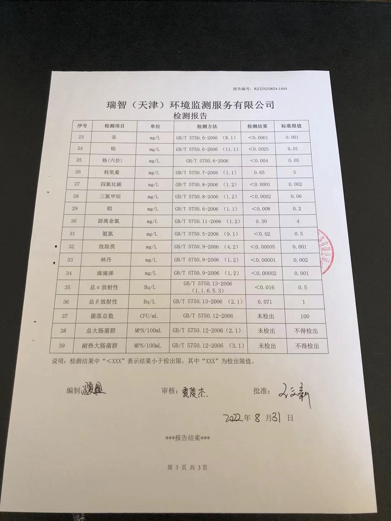 八月份检测报告