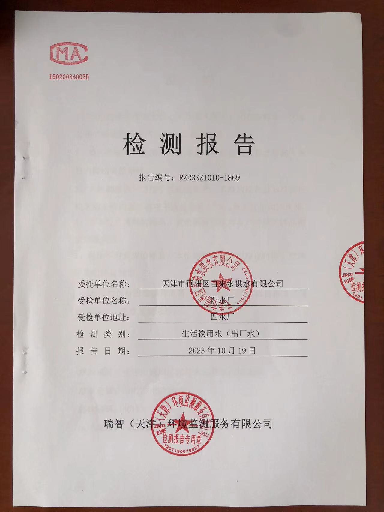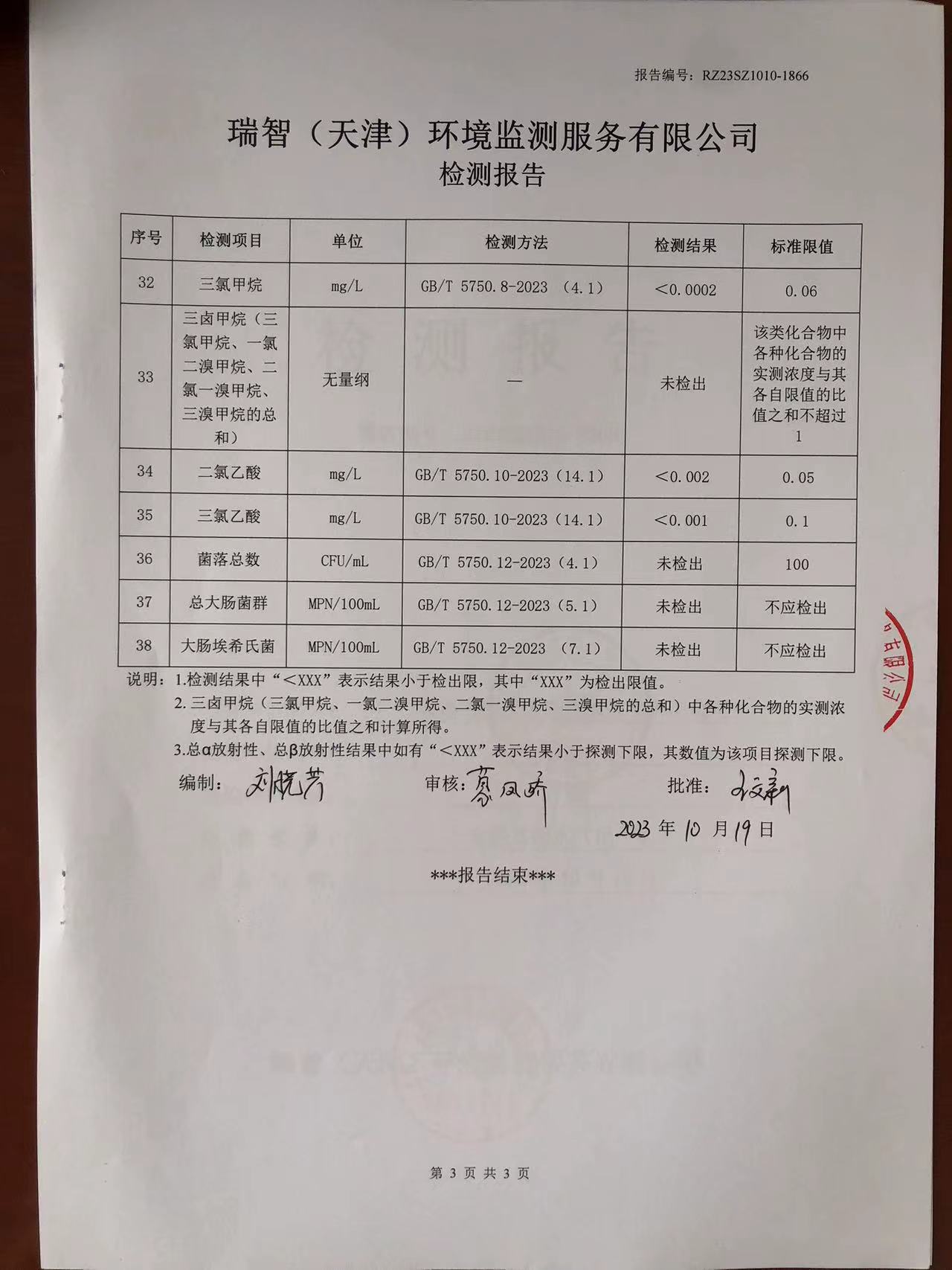 2023年10月份水质检测报告