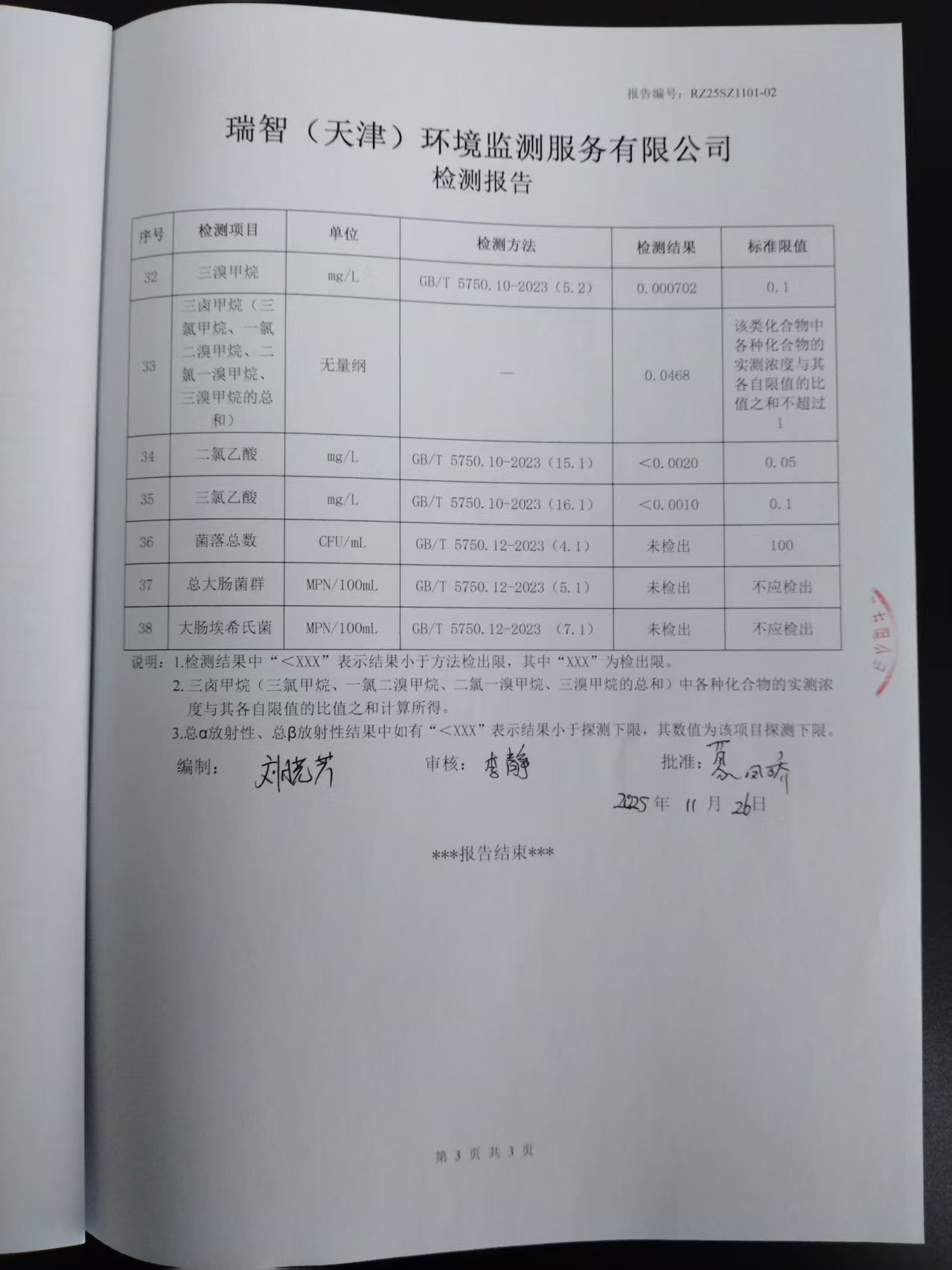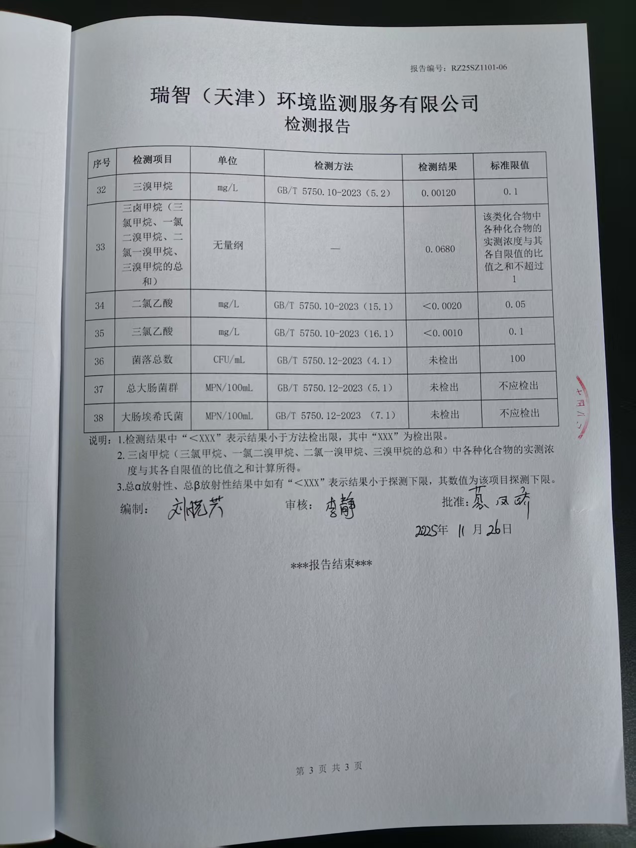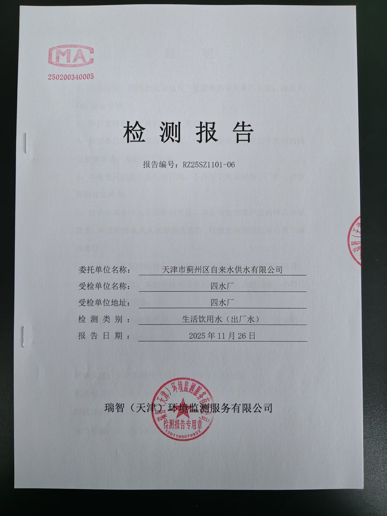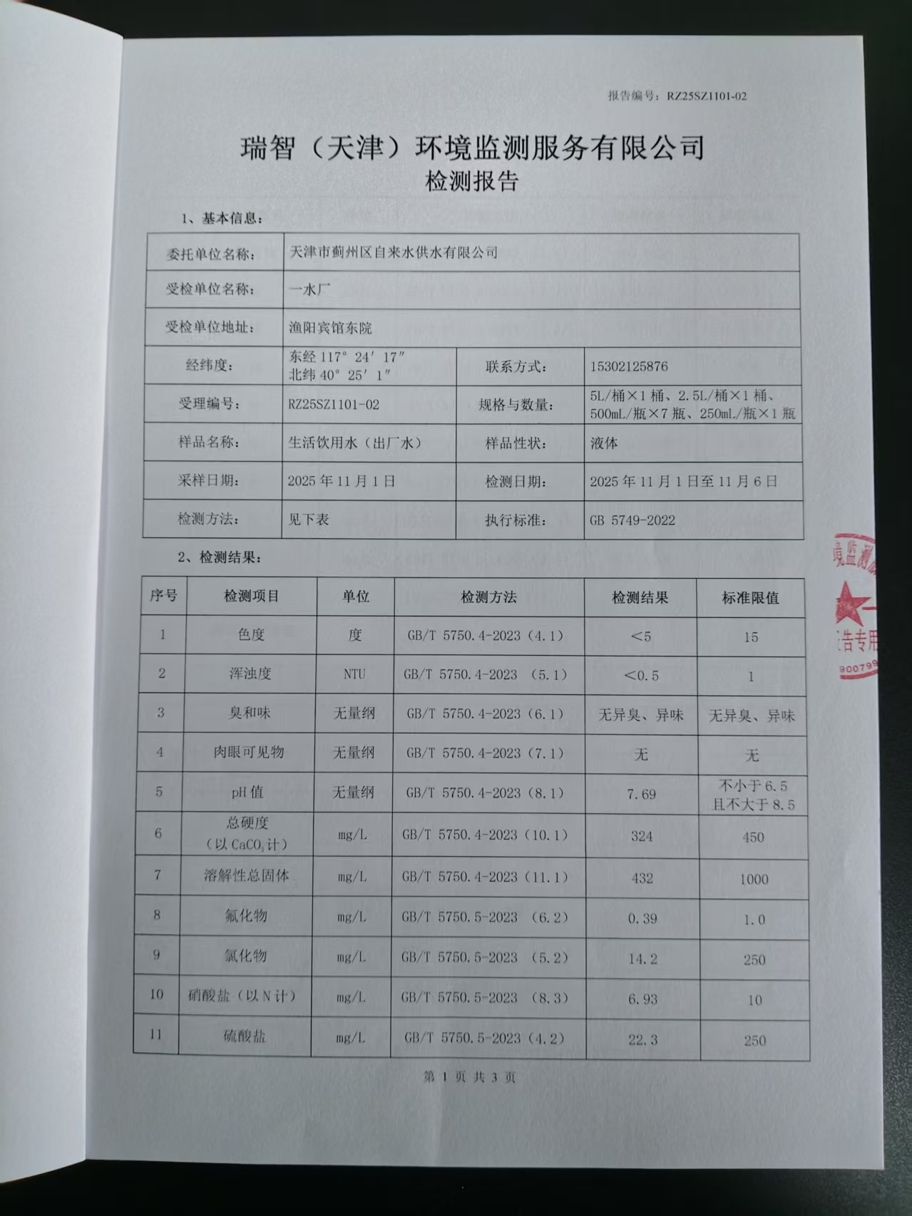 2025年11月份水质检测报告