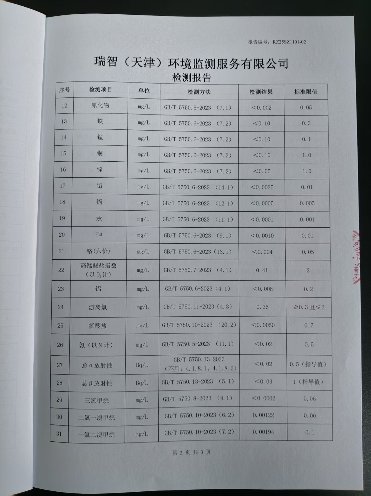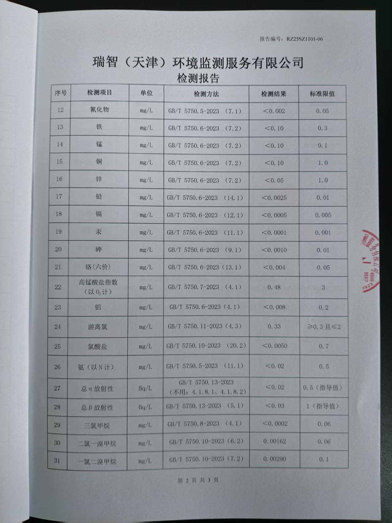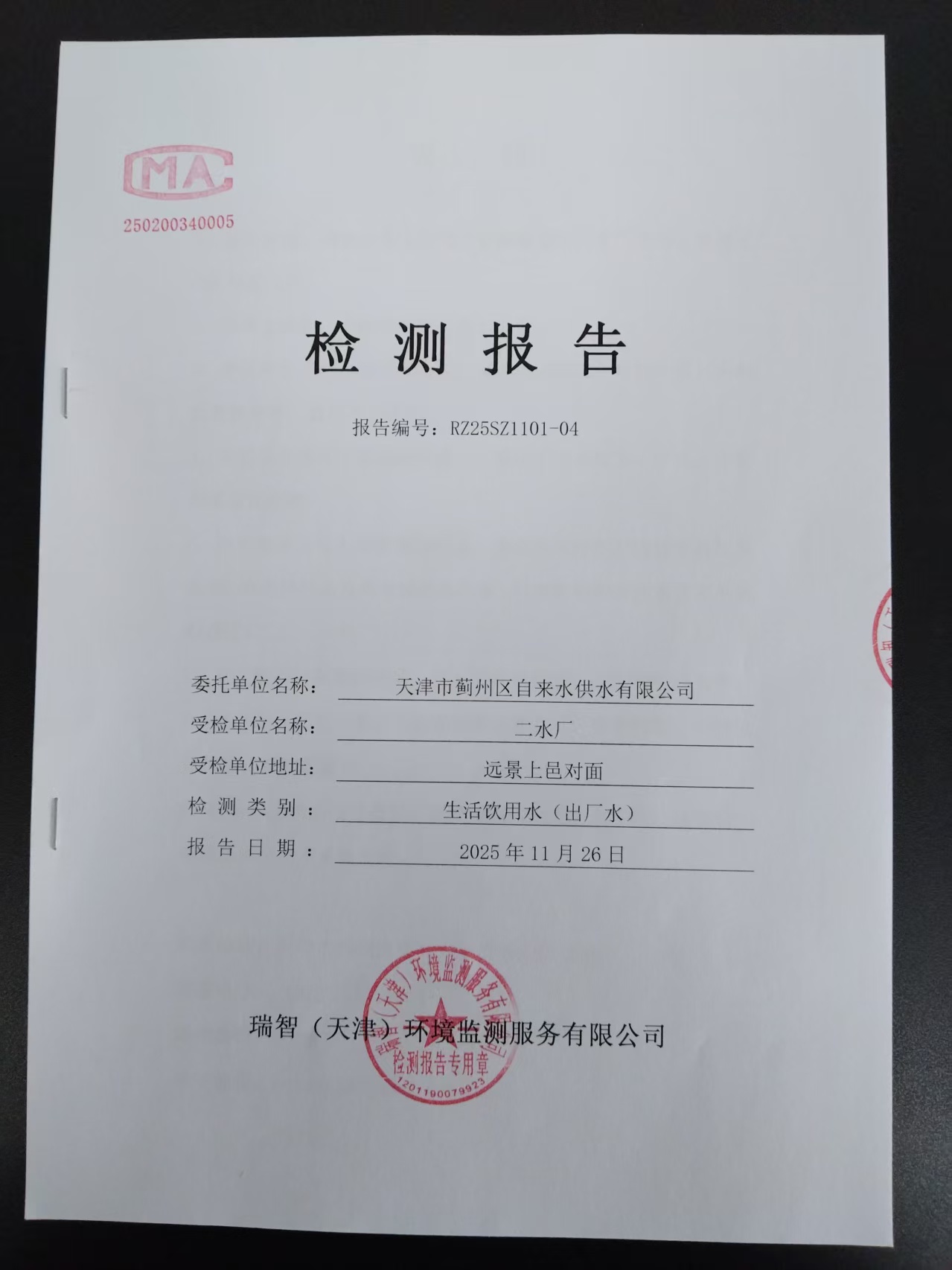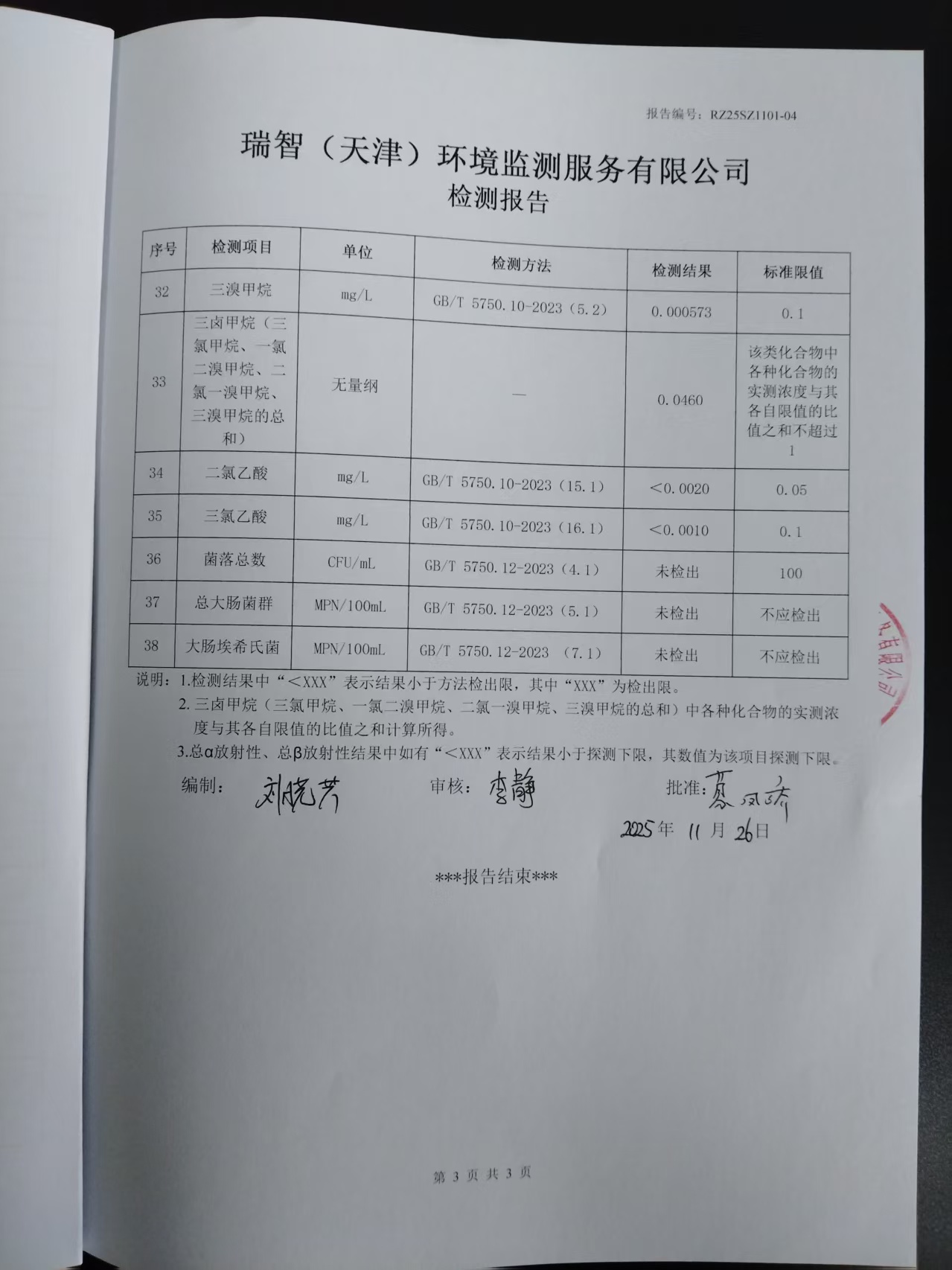 2025年11月份水质检测报告